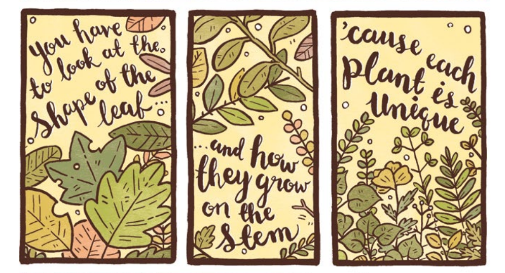 I completely fell in love with the lettering in this book. It flowed so nicely from panel to panel. There was a mix of traditional speech bubbles and the hand lettering seen in the panels above. This was done in part to convey when the text was part of external vs internal dialogue. I think it worked very well, and it made for some amazing panels I would love to frame and see every day.