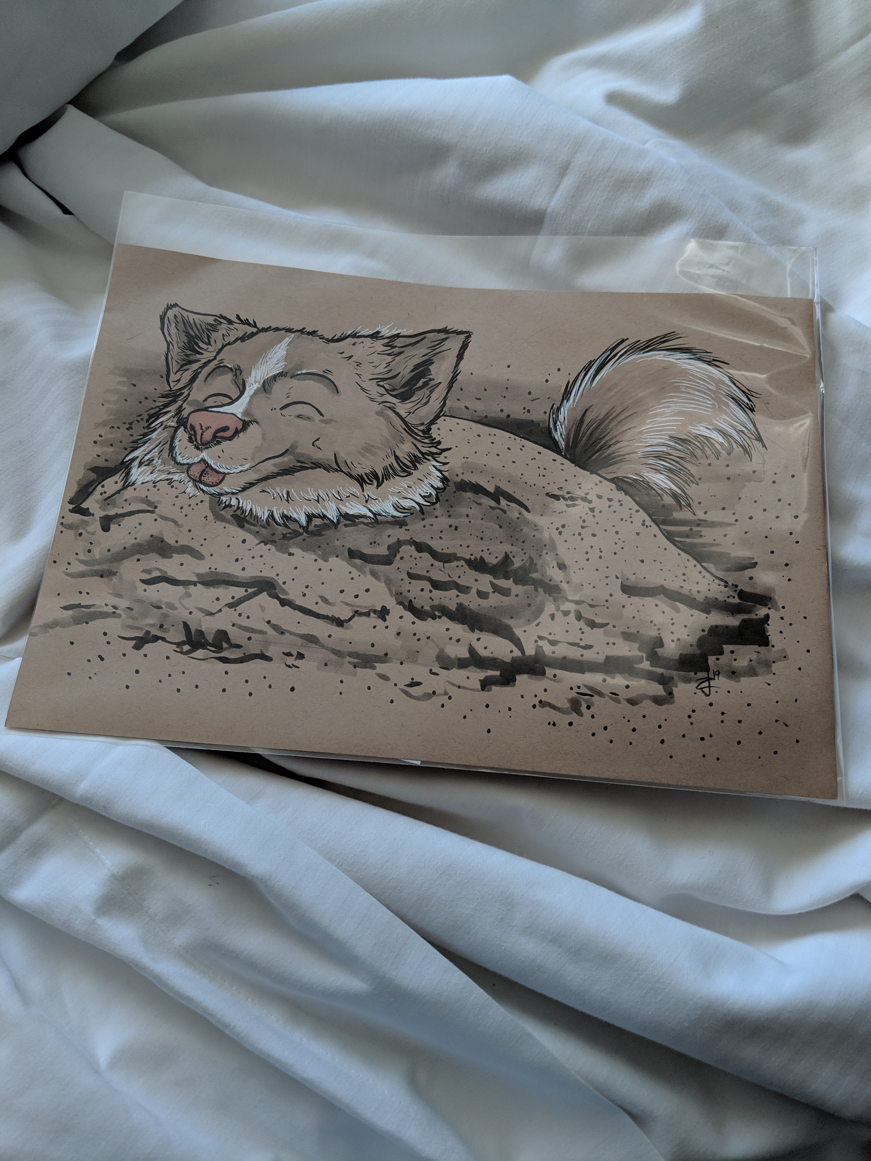 I got a lot of fun artwork this year at Wondercon, including a few one of a king commissions. I particularly love this piece of my dog Laufey buried in sand.