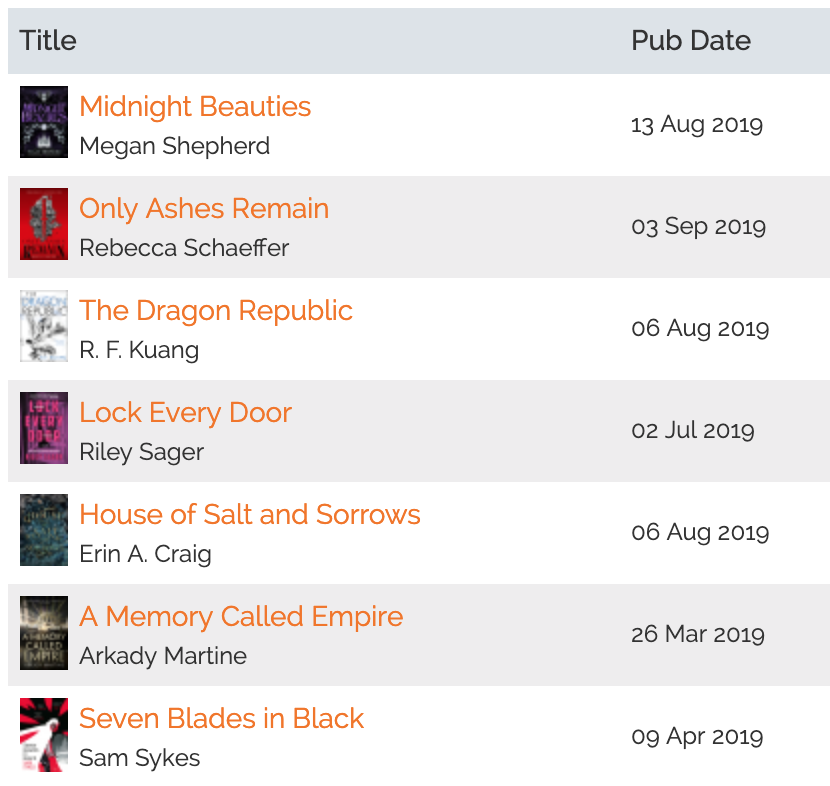 The Dragon Republic: You guessed it, another sequel. This follow up to The Poppy War is a current read. I’m hoping to finish it very soon. I’m loving the sheer amount of plot development that happens in each of these books. R. F. Kuang is well on her way to becoming a new auto-buy author for me.